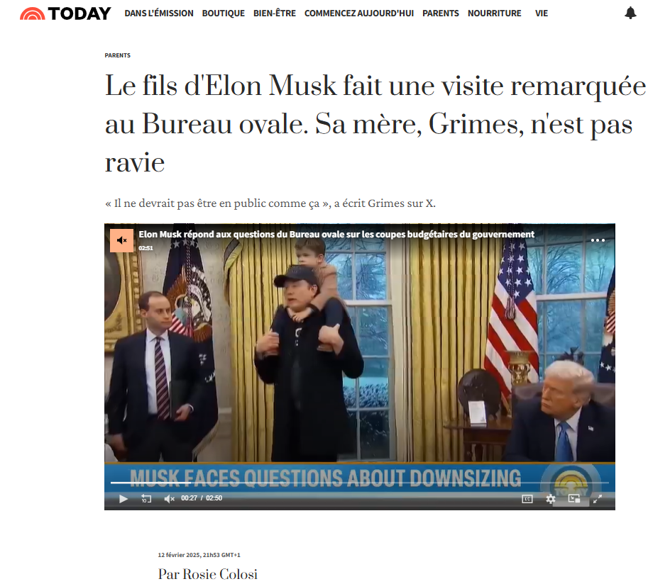 La présence de l’enfant de Musk, supposée faire référence à la photo mythique de John Jr. jouant dans le bureau de son père, le Président Kennedy, est tout aussi éloquente. Les lieux ont manifestement l’air d’avoir été privatisés. Le fait de tenir une conférence de presse en présence de l’enfant dans ce lieu est chargé de sous-entendus. Comprenne qui voudra.
