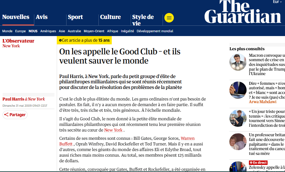 Au fil de son existence, le Club de Rome a accueilli aux côtés de ces stars de l’industrie, la reine Béatrix des Pays-Bas, un premier ministre indien, un prince saoudien, un ancien président du Mexique. De fait, il s’agit d’un lieu similaire au WEF où cohabitent les milliardaires des diverses industries, des scientifiques dédiés à la cause du plus fort, et des politiciens complaisants. Le mélange indigeste des genres qui existe depuis le New Deal du président Roosevelt…