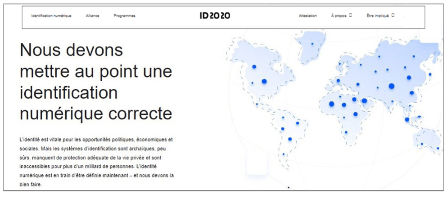 Ce projet est porté à bout de bras depuis 2016, par ID2020 qui promeut « des approches éthiques et respectueuses de la vie privée en matière d’identification numérique afin de soutenir une autonomisation sociale, politique et économique équitable ». (ID2020.org).